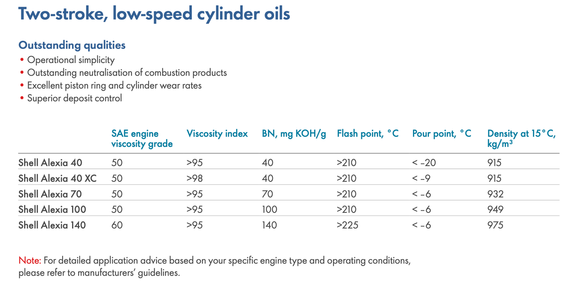 Shell Alexia 140 - a two-stroke engine cylinder oil whose exceptionally high base number aims to deliver the ultimate protection for the most modern efficient engines against cold corrosion issues and the means of optimising oil feed rates when fuel grades change.