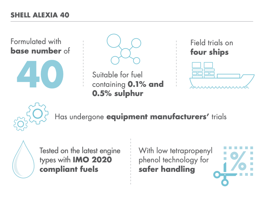 Shell Alexia 40 XC - A low-base number (BN), high-performance cylinder lubricant designed for modern low-speed, two-stroke marine engines using low Shell Marine Launches New Cylinder Oil for Engine Optimisation - Ship & Bunker sulphur fuels.