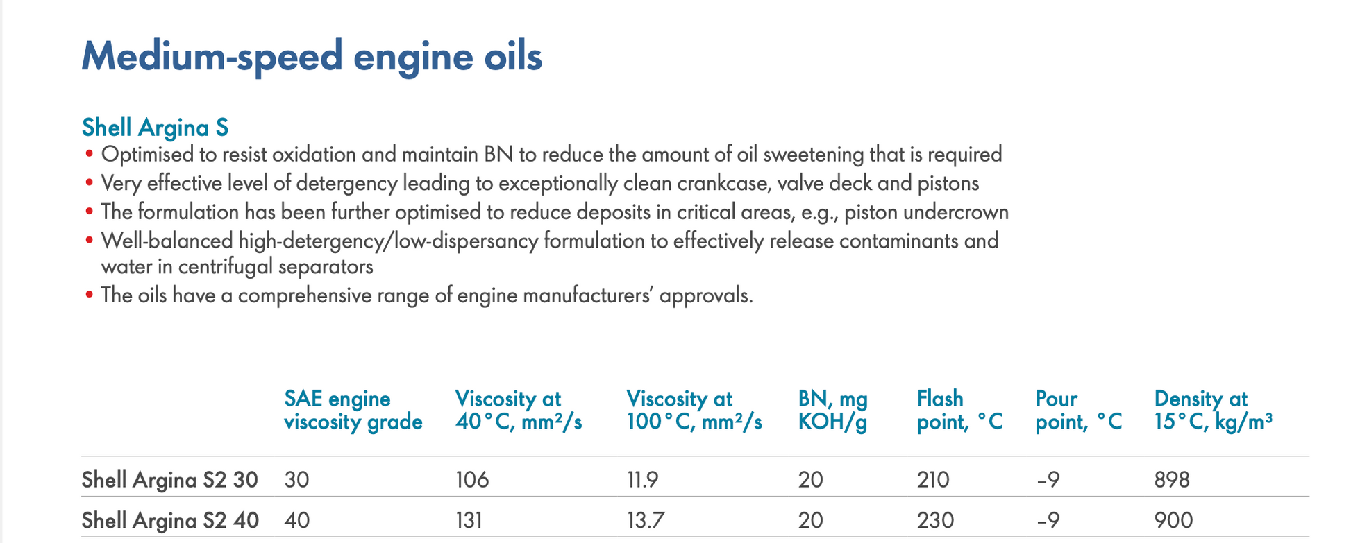 - Shell Argina S2 - designed to withstand conditions of relatively low oil stress. It provides protection from deposits and corrosion and is suitable for residual, blended, and distillate fuels. Power Engine Oils - Argina & Gadinia | Shell Malaysia